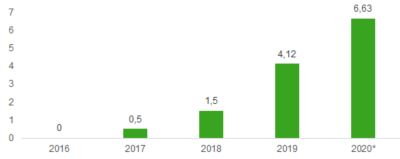 Veja, na figura 1, a evolução da demanda por milho para a produção de etanol no país, segundo dados da Companhia Nacional de Abastecimento (Conab). Até 2016, os volumes eram irrisórios. A partir daí, o o volume saiu de 500 mil toneladas de milho demandadas em 2017 para 6,63 milhões de toneladas de milho em 2020.